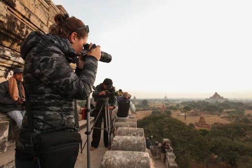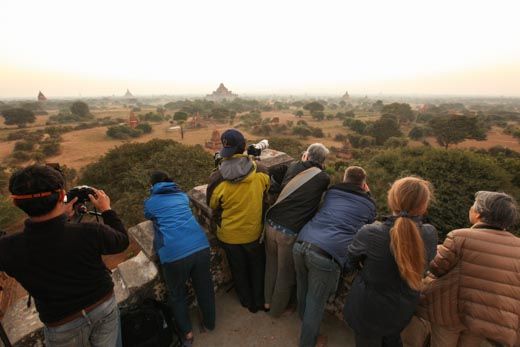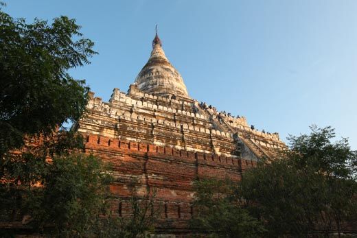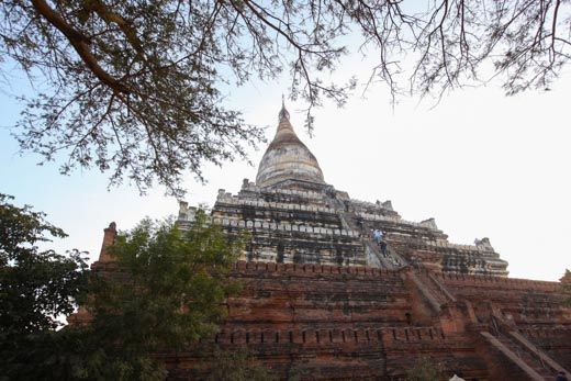 Steep stairways on all four sides of the receding terraces lead to the base of the pagoda from where visitors can see numerous temples in Bagan. The pagoda is also a popular sunset-viewing spot, as it is the highest point where you can perfectly see the sun go down. As Shwe San Daw pagoda is one of the tallest pagodas in Bagan with a height of 328 feet, and is even visible from far away on Bagan land.