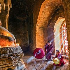 The Buddhist remains that extend all the way to the horizon,the gently-flowing Ayeyarwady River, the farmers cultivating the fields among the ruins, the craftworkers in their houses making lacquerware. Bagan is the place where people live together with ruins. The beauty of Bagan captured in photos will surely fascinate you.