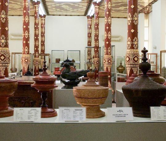 博物館には様々な漆器の骨董品があり、多くはガラスで保護されている。いくつかの作品は数世紀前のもので、植民地時代以前のものもある。いくつかの骨董品は王族によって使用されていたが、ここにある漆器のほとんどは宗教上の目的で使用されていた。その多くは托鉢の鉢として使われていた。